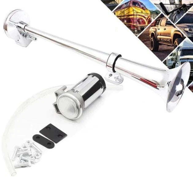 Each set includes: Metal trumpet, 12V electric compressor, air hose, bag of fixings.