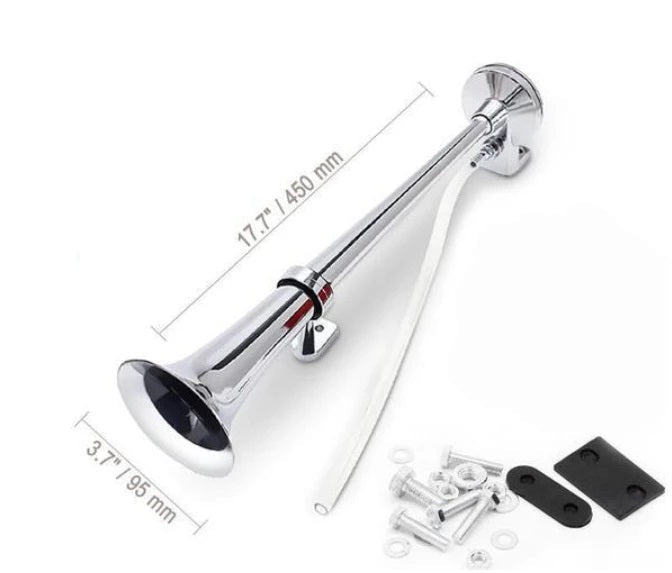 Each set includes: Metal trumpet, 12V electric compressor, air hose, bag of fixings.